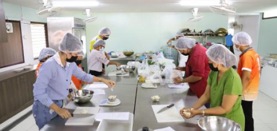ภาพกิจกรรม โปรแกรมวิชานวัตกรรมและธุรกิจอาหาร จัดกิจกรรมอบรมเชิงปฏิบัติการ เรื่อง การผลิตผลิตภัณฑ์อาหารให้ปลอดภัย (การผลิตเค้ก) 6 มิถุนายน 2567 งานบริการวิชาการ