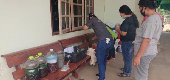 ภาพกิจกรรม โปรแกรมวิชาเคมี จัดกิจกรรมในโครงการ การพัฒนานวัตกรรม การตรวจสอบคุณภาพ และการศึกษาความเหมาะสมเพื่อแก้ปัญหาชุมชน 25 เมษายน 2565 งานบริการวิชาการ