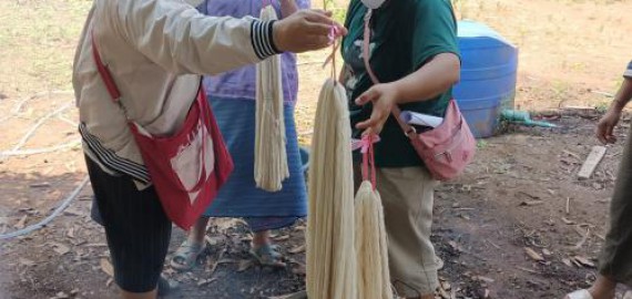 ภาพกิจกรรม โปรแกรมวิชาเคมี จัดการฝึกอบมเชิงปฏิบัติการการย้อมเส้นด้ายฝ้ายด้วยสีจากธรรมชาติ 25 เมษายน 2565 งานบริการวิชาการ
